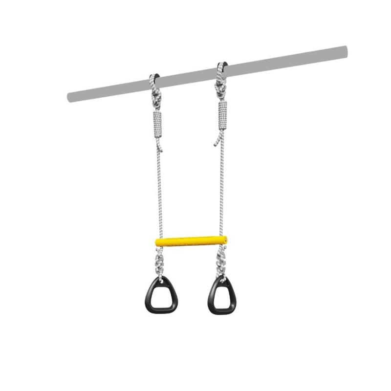 Кольца с перекладиной ROMANA - это отличное дополнительное оборудование для дачного спортивного игрового комплекса, специально разработанное для детей. Этот тренажер предоставляет возможность разнообразить игровой процесс и активно развивать физическую форму малышей.