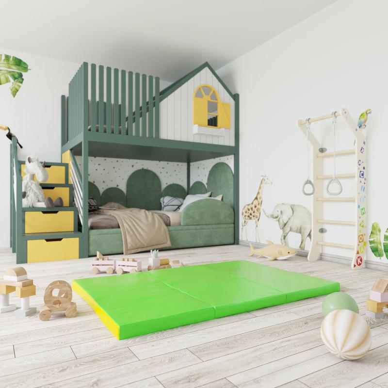Параметры изделия: 1000*1500*60мм в разложенном виде, и 1000*500*180мм в собранном соответственно. Благодаря своим небольшим габаритам в сложенном виде, мат практичен в хранении и транспортировке. Габариты изделия позволяют создать безопасную зону во время занятий на шведской стенке. Мат подойдет для различных комплектаций спортивного комплекса, в том числе с навесным оборудованием (лестницами и кольцами), и с канатным лазом или скалолазом. Кроме того, габариты мягкого щита позволяют создать полноценный спортивный уголок для физической активности. Мягкий щит отлично подходит для выполнения упражнений, гимнастики, йоги, аэробики и др. Множество эффектных цветовых сочетаний позволят подобрать мат для любого интерьера. Однотонные маты представлены в двух универсальных цветах – сером и бежевом. Нежные оттенки деликатно дополнят интерьер. Сочные расцветки двусторонних матов добавят красок в обстановку комнаты. Особенностью двусторонних матов является разная расцветка для его сторон. Благодаря этому, поменять цвет мата очень просто – достаточно перевернуть мягкий щит на другую сторону.