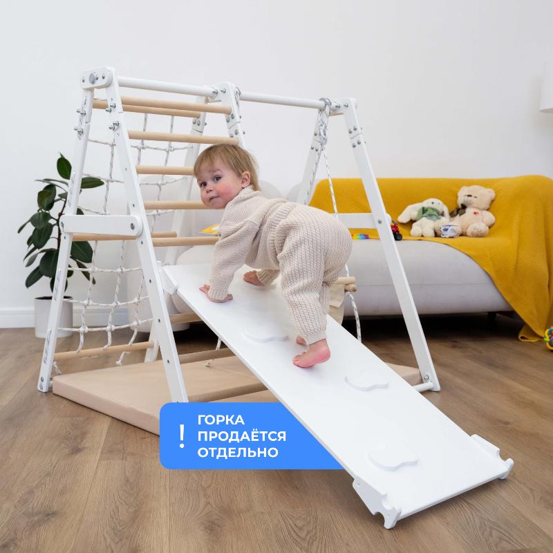 Домашний игровой напольный комплекс - это лучший выбор родителей, которые желают обеспечить своему малышу активное и безопасное развлечение. Этот комплекс включает в себя множество функций, которые помогут малышу развить свои физические навыки и получить положительные эмоции. Благодаря своей безопасности и универсальности, он станет отличным дополнением к детской комнате или спортивной площадке на улице. В сложенном виде он компактно хранится и его удобно транспортировать. Для дополнительной защиты от неприятностей при падений рекомендуется приобрести мягкий гимнастический мат.