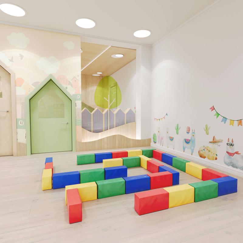 Дизайн мягких игровых элементов исполнен в ярких цветах, играя с ними, ребенок сможет запомнить названия фигур и цветов. Дети с удовольствием будут играть с элементами, развивая фантазию и воображение, координацию движений, все группы мышц и ловкость.