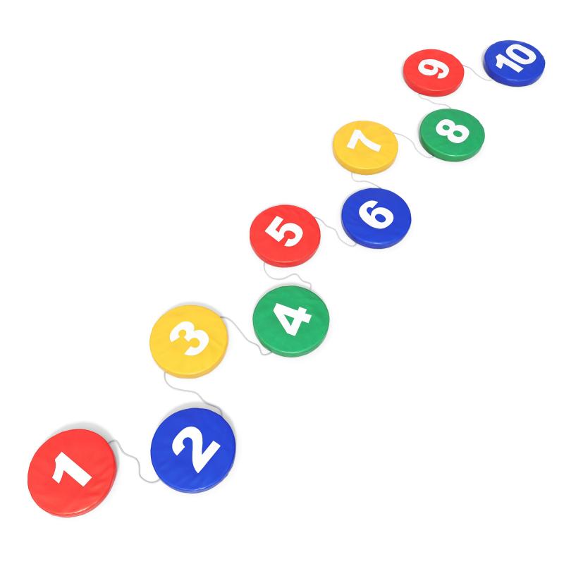Мягкий развивающий модуль «Шагайка» - это десять кругов диаметром 300 мм, соединенные между собой. Помогают научиться считать и развить координацию у ребенка. Габаритные размеры 50 х 300 мм