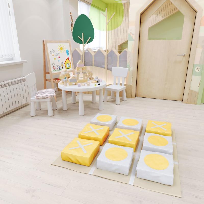 Развивающий мягкий модуль «Крестики-нолики» ДМФ-МК-10.95.00 - представляет собой коврик прямоугольной формы для игр в крестики нолики. Кубики из поролона толщиной 10 см, обшитые винилискожей. Помогают развить логическое мышление. Состоит из коврика с прямоугольниками, поролоном. Яркие цвета учат детей познавать цвета и форму, взаимодействуя между собой в процессе игры. Помогают развить логическое мышление. Мягкие детали хорошо выдерживают нагрузку, не теряя при этом своей первоначальной формы, легко моются с помощью обычных моющих гигиенических средств. Не впитывают влагу и не имеют запаха, отличаются повышенными прочностными свойствами и долговечностью.