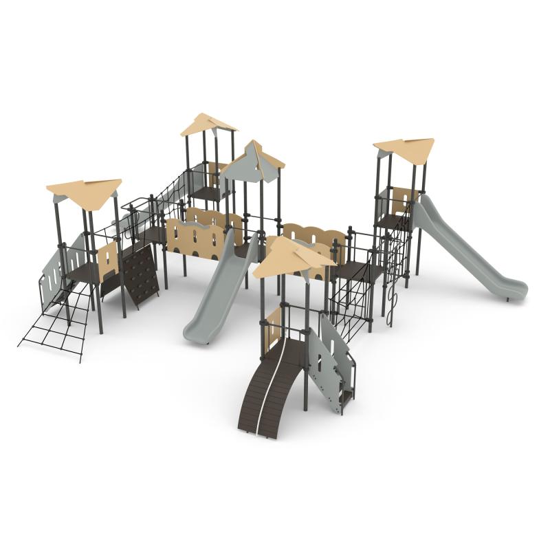 Игровой комплекс для тематических игр и физического развития предназначен для детей в возрасте от 8 лет. Изделие представляет собой сборно-разборную каркасную конструкцию из металлических труб, установленную на забетонированные стойки.Изделие устанавливается на открытых уличных участках, находящихся под контролем ответственного лица – эксплуатанта. Установка Изделия должна проводится на ровной площадке, свободной от насаждений. В зоне приземления должно быть ударопоглощающее покрытие (песок, древесные опилки) минимальной толщиной 300 мм.