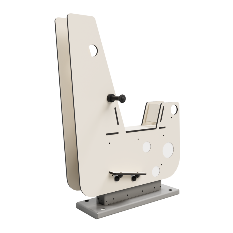 Изделие представляет собой сборно-разборную конструкцию из листового пластика и металлических элементов. Каркас - сталь конструкционная, покрытие - цинкосодержащий грунт, окраска полимерным порошком. Панели, ограждения - HPL.