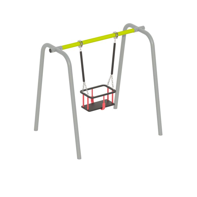 Качели предназначены для размещения на территории парков, дворовых территориях и мест общественного отдыха с целью организации досуга и гармоничного развития детей в возрасте от года.Сиденье представляет собой обрезиненный металлокаркас с амортизирующими бортиками сиденья, четырьмя боковыми перекладинами, ободом.Монтаж качели производится путем бетонирования грунтозацепов в грунт на глубину не менее 500 мм. Установка должна проводится на ровной площадке, свободной от насаждений. В зоне безопасности должно быть ударопоглощающее покрытие (песок, древесные опилки) минимальной толщиной 300 мм.