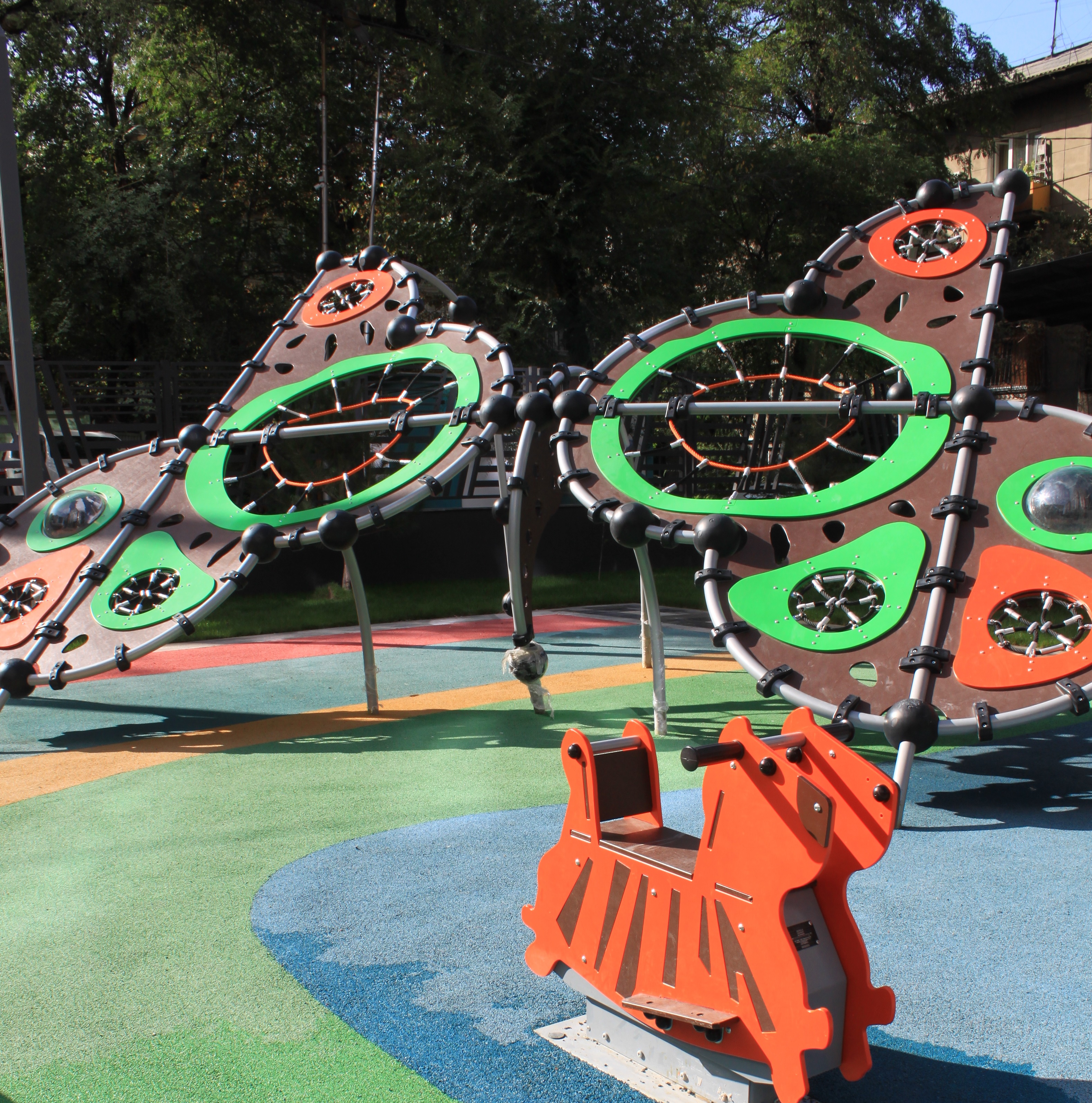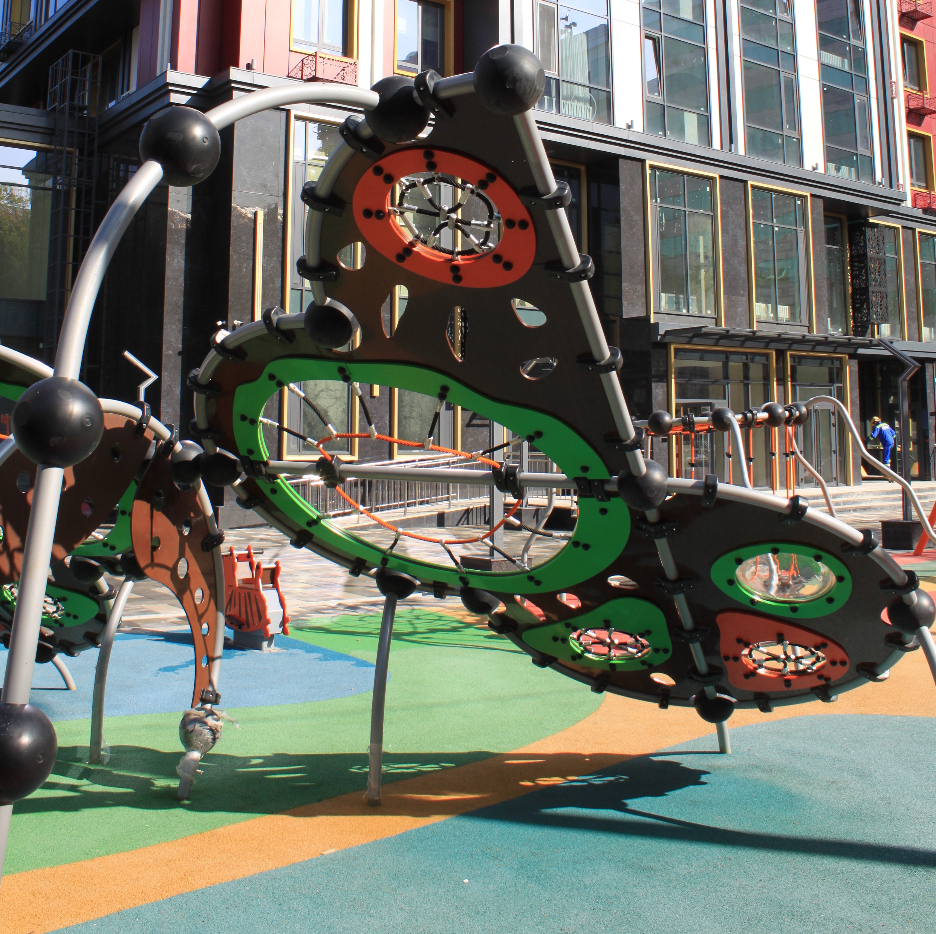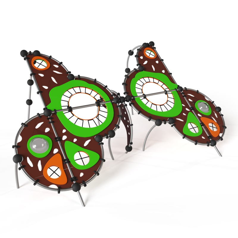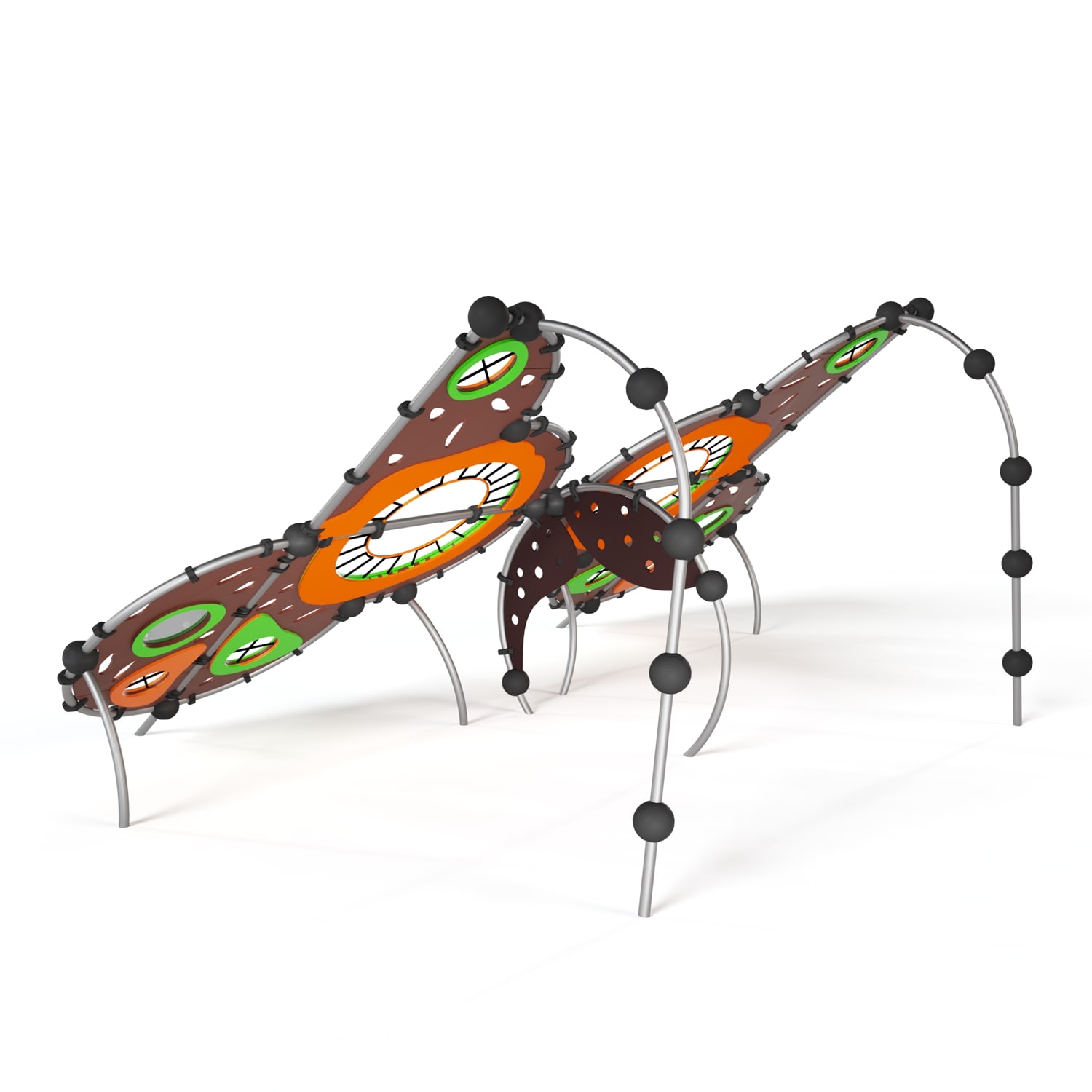 Каркас - сталь конструкционная, покрытие - цинкосодержащий грунт, окраска полимерным порошком. Панели - полипропилен/ПНД. Канатные сети, лазы - канат армированный 16 мм.